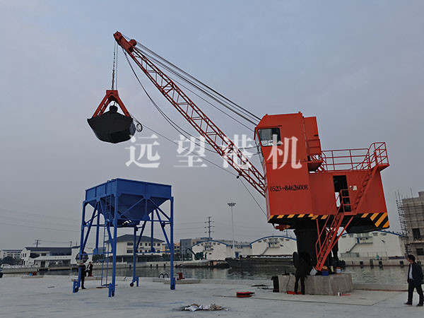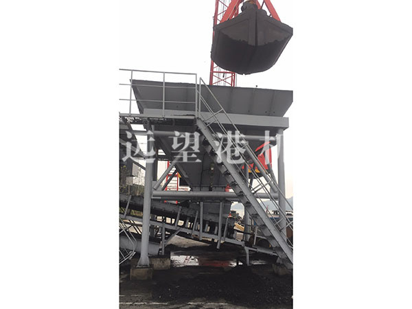 漏斗有足够的结构强度和稳定性。装车漏斗含漏斗和液压电动鄂式闸门,鄂式闸门底部距码头面有一定高度(保证各类汽车的接料和通行),漏斗上开口尺寸根据抓斗张开尺寸配套,下开口尺寸适应汽车接料。漏斗支腿采用型钢制作并包有防撞钢板。漏斗体采用厚耐磨钢板制作。漏斗壁夹角满足物料对漏斗壁的静摩擦角,以防止起拱堵料。为环保考虑,漏斗除通车处不封闭,其他位置尽可能采用维护结构封闭,防止扬尘扩散。