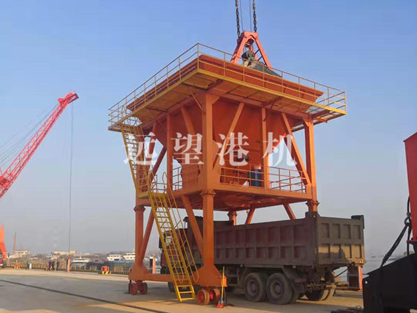 移动式散货漏斗根据国家环保要求,各个码头装卸散货作业时采用有抑尘功能的环保型漏斗。每个装车漏斗单独使用一套高压喷雾系统,采用加压泵、阀组和1立方米水箱,喷雾系统的布置不影响汽车通行和固定吊运行,水电管线敷设整齐。喷雾系统带控制系统和操作箱,喷雾系统能感应物料后自动喷出。制造时现场根据实际情况设斗口档尘板。