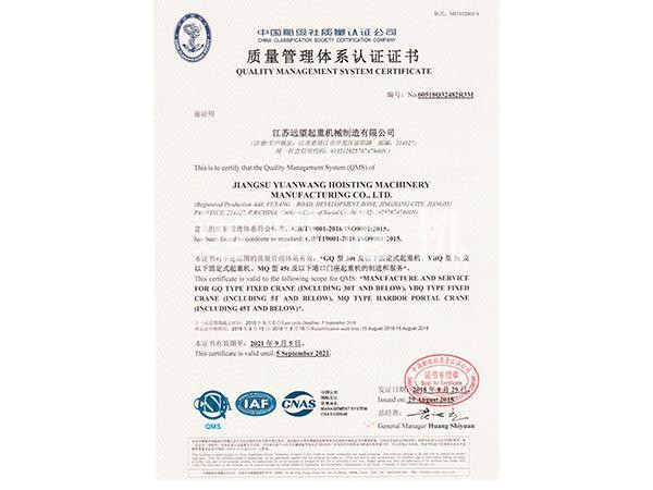 CCS质量管理体系证书 2018