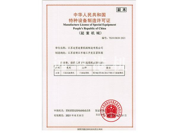 特种设备制造许可证 MQ45(A级) 副本2021年